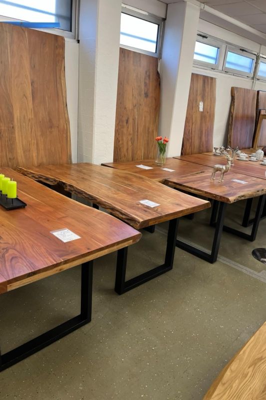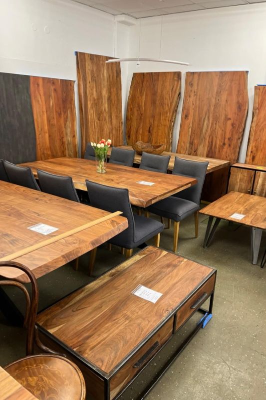 Im Holztisch Depot in Marburg finden Sie eine außergewöhnlich große Auswahl an massiven Holztischen – direkt vom Hersteller und ohne Zwischenhandel. Von klassischen Esstischen aus Eiche bis hin zu individuellen Designs aus Akazie, Mango oder Ulme bieten wir Möbelstücke, die durch Qualität, Langlebigkeit und natürliche Ausstrahlung überzeugen.