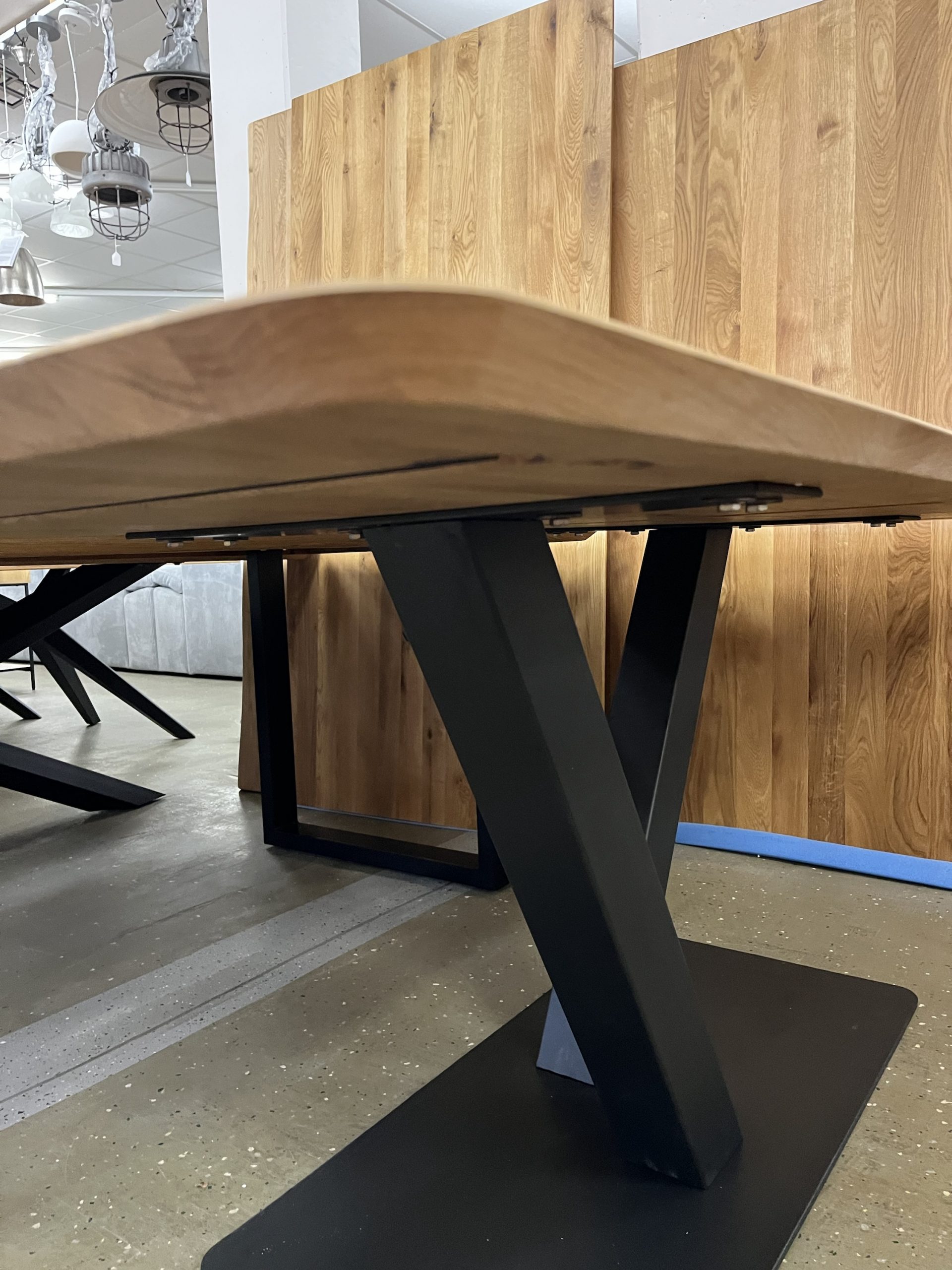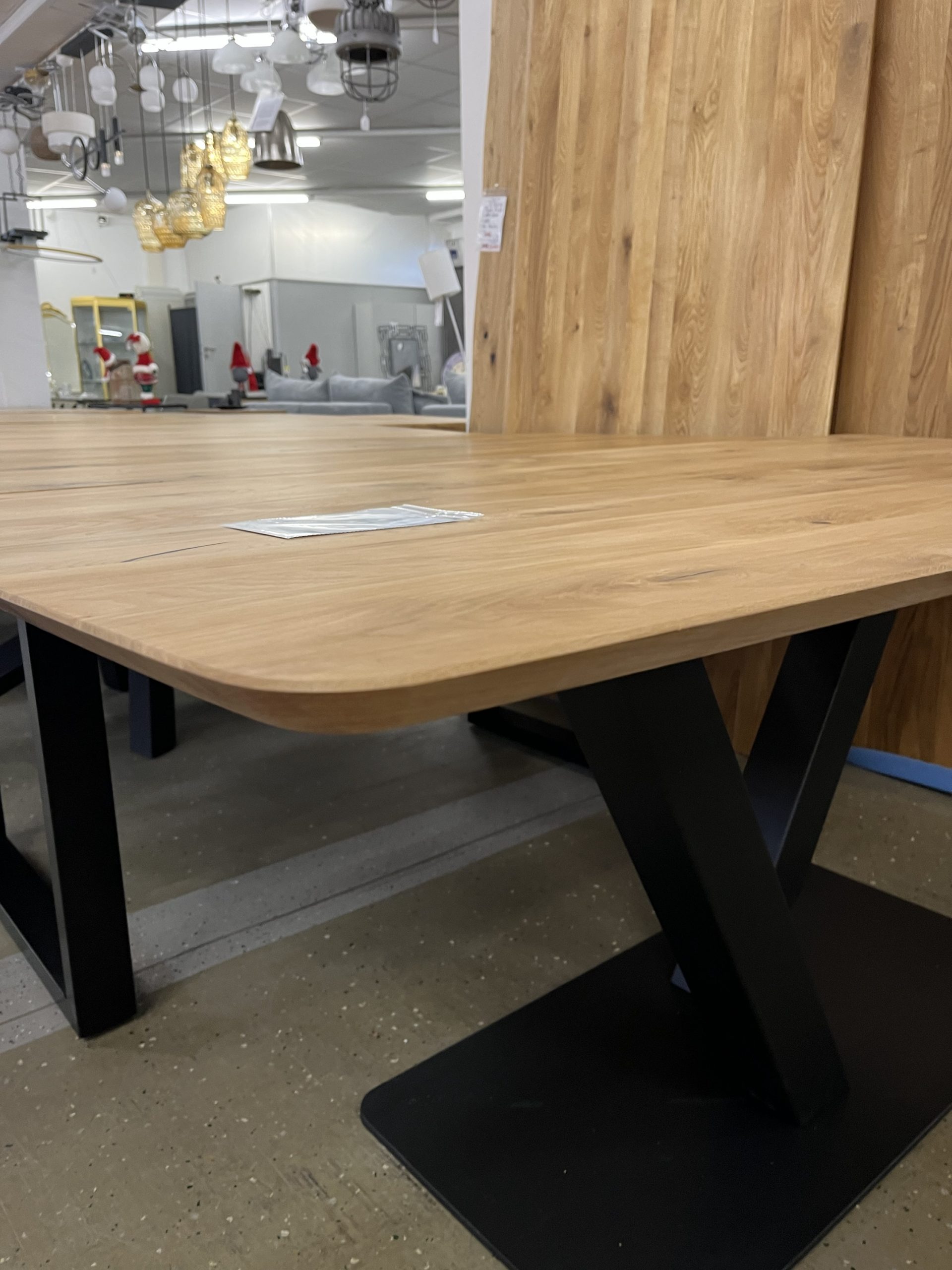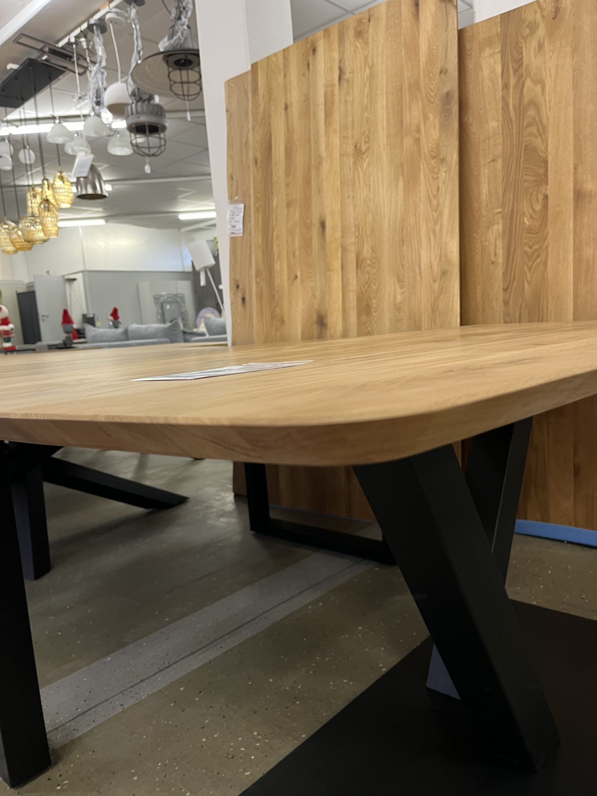 Esstisch aus Eiche Massiv 180x90x75 cm 30 mm Stark❗️ Ein hochwertiger Esstisch aus vollmassivem Holz mit natürlicher Baumkante für einen einzigartigen, organischen Look. Die Oberfläche ist farblos geölt, wodurch die natürliche Maserung und Struktur des Holzes perfekt zur Geltung kommen und gleichzeitig geschützt sind. Das robuste Gestell besteht aus pulverbeschichtetem Stahl in Doppelter Y oder X Profil-Form in elegantem Schwarz – modern, stabil und stilvoll. Äste und Risse geschlossen Oberfläche geschliffen und farblos geölt Gestell Y oder Doppel X Profil schwarz, Andere Gestellten auch möglich ❗️ Service & Vorteile: • Parkplätze vorhanden • EC-Kartenzahlung möglich • Persönliche Beratung vor Ort • Günstiger Lieferservice Unsere Möbel bekommen Sie Sofort und ohne elend lange Wartezeit +++ AUF WUNSCH LIEFERN WIR AUCH +++