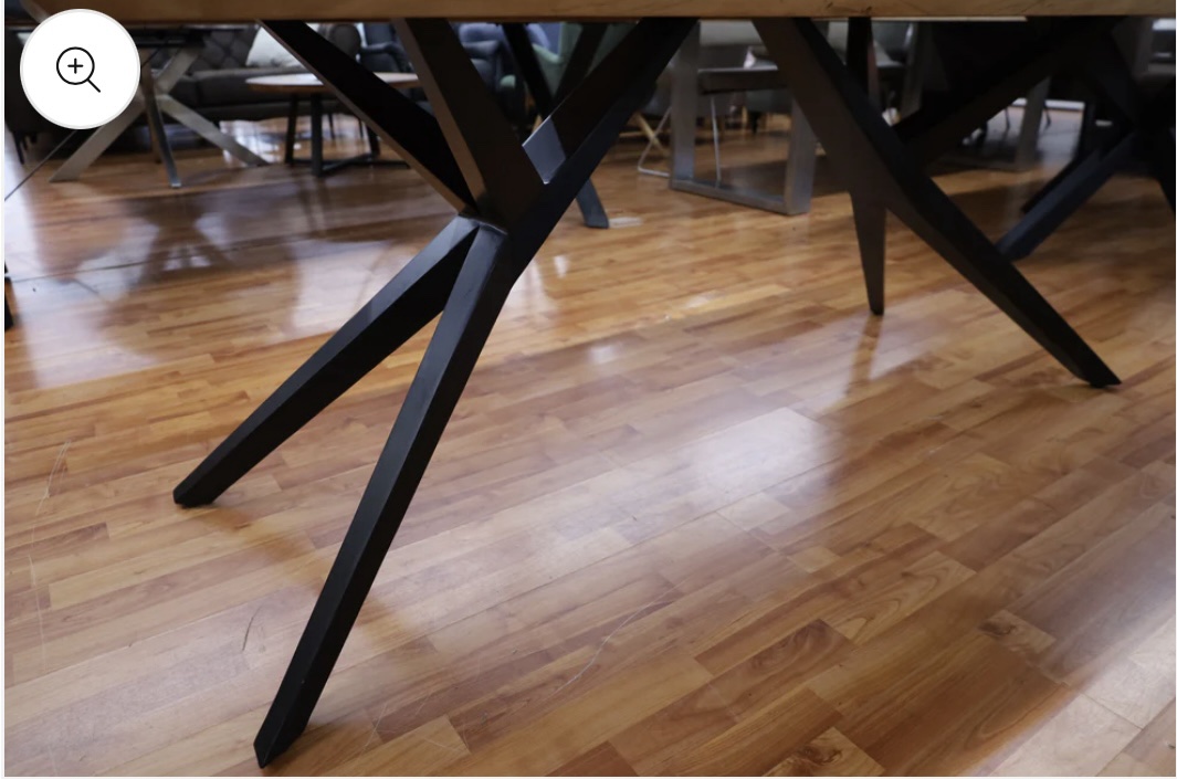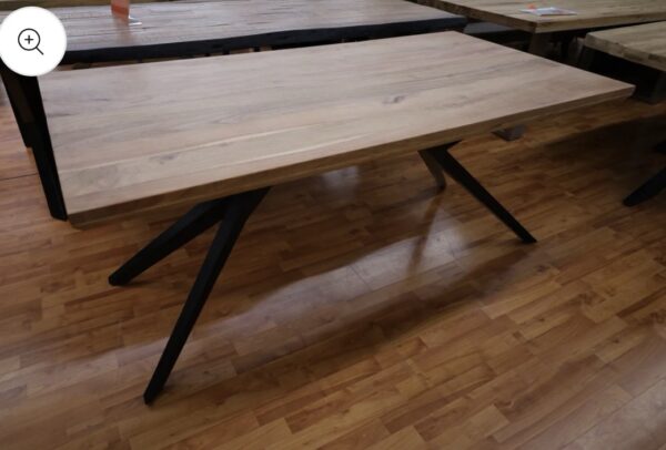 Der moderne Industriestil zeichnet diesen Esstisch aus. Die Tischplatte ist aus massiver Akazie gefertigt und zeigt sich stets als echtes Einzelstück. Die auf gedoppelte Tischplatte hat eine Stärke von 60 mm. Durch seine massive Bauweise verfügt er über einen festen und stabilen Stand. Das Material und die hochwertige Verarbeitung garantieren eine lange Haltbarkeit des Tisches
