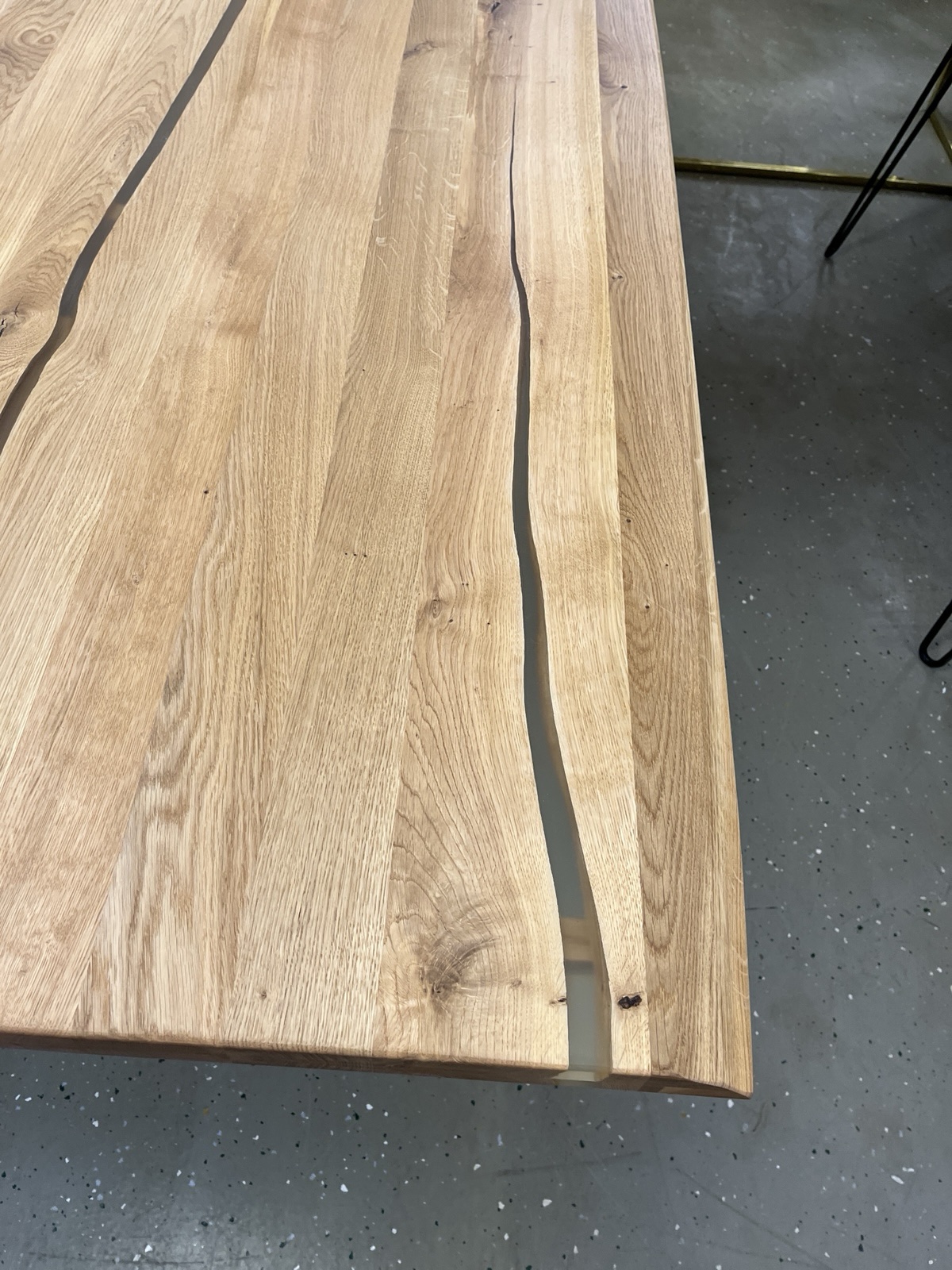 Esstisch Tisch + Massivholz Eiche 200x100x75 Epoxidharz mit Stern / Doppel X und U Gestell