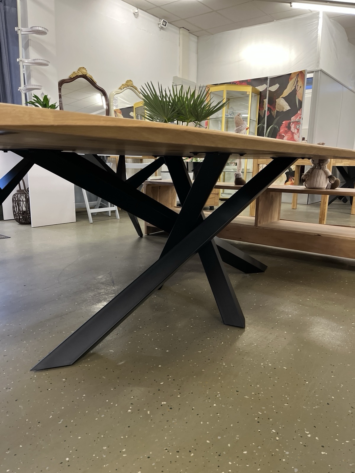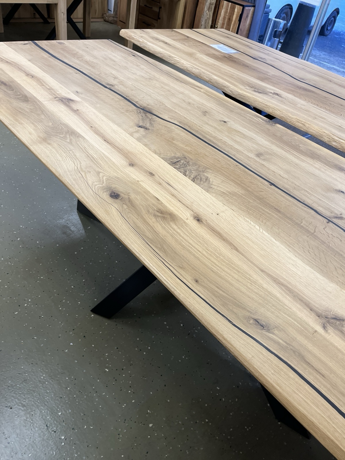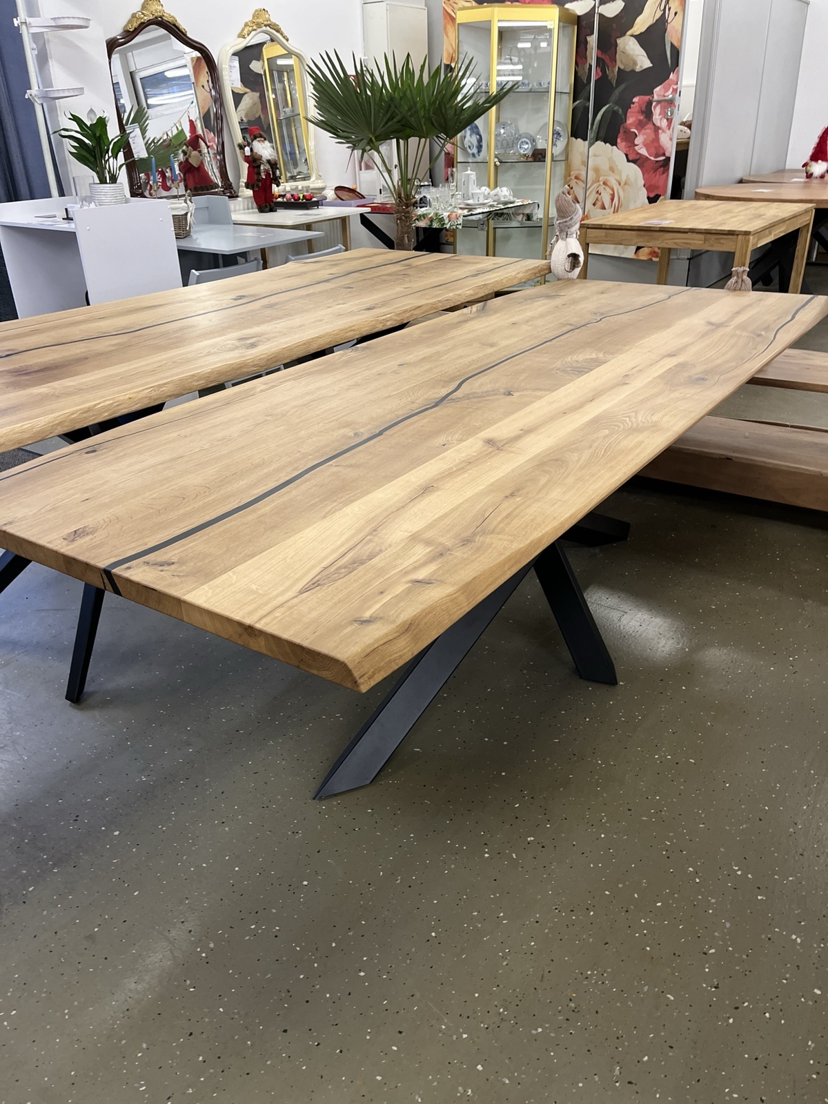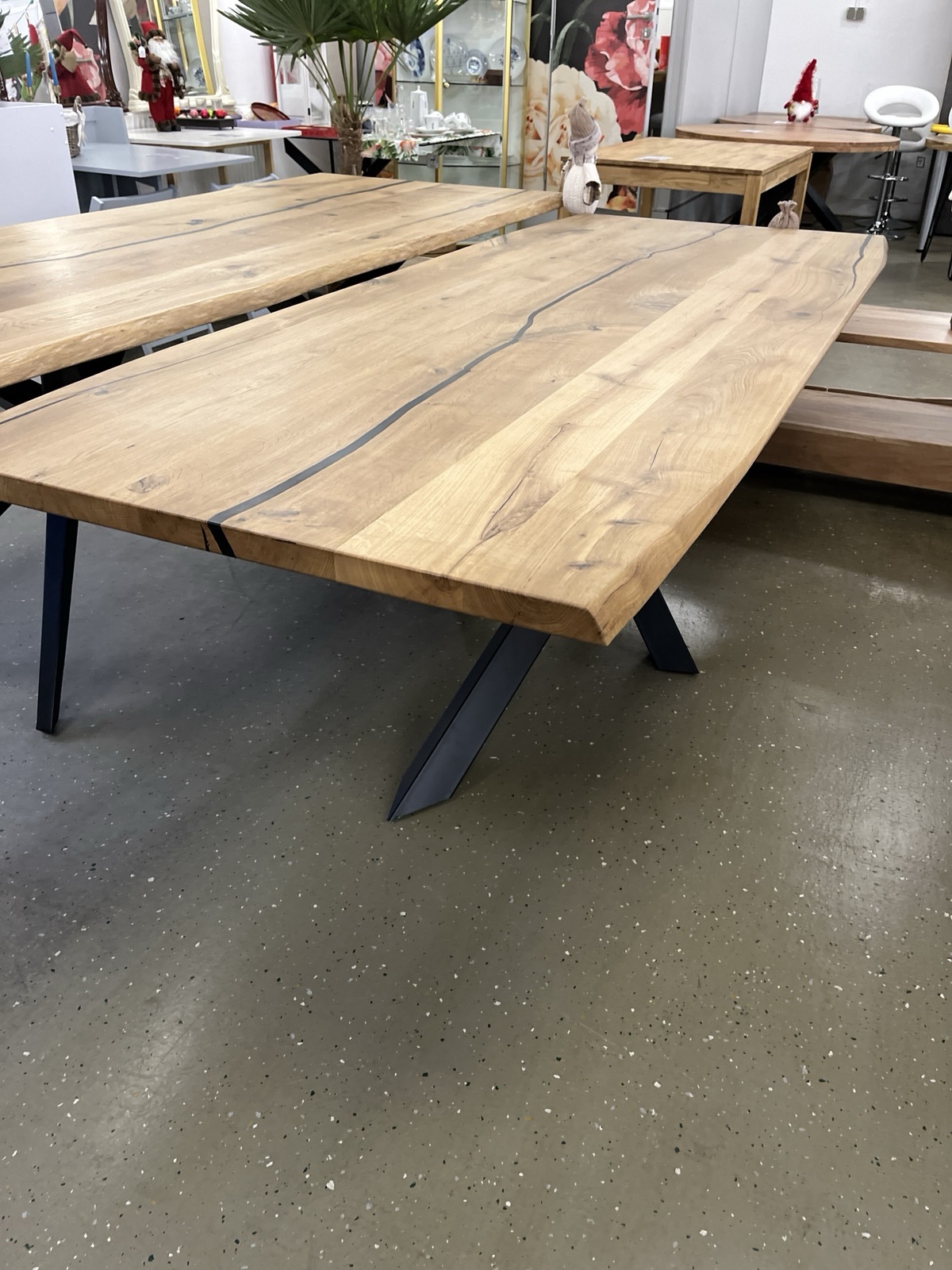 Esstisch Tisch + Massivholz Eiche 240x100x75 cm Epoxidharz mit Stern / Doppel X und U Gestell Maße: Ab 120 cm bis 300 cm immer vorhanden ❗️ Neue Wahre auf Lager❗️ Preise mit Gestell andere Füße nach Anfrage ❗️ • Der moderne Industriestil zeichnet diesen Esstisch aus. Die Tischplatte ist aus massiver Eiche oder Akazie gefertigt und zeigt sich stets als echtes Einzelstück. Die auf massiven Vollholz aus 40 mm Stark oder gedoppelte Tischplatte hat eine Stärke von 60 mm. Durch seine massive Bauweise verfügt er über einen festen und stabilen Stand. Das Material und die hochwertige Verarbeitung garantieren eine lange Haltbarkeit des Tisches Unsere Möbel bekommen Sie Sofort und ohne elend lange Wartezeit +++ AUF WUNSCH LIEFERN WIR AUCH +++