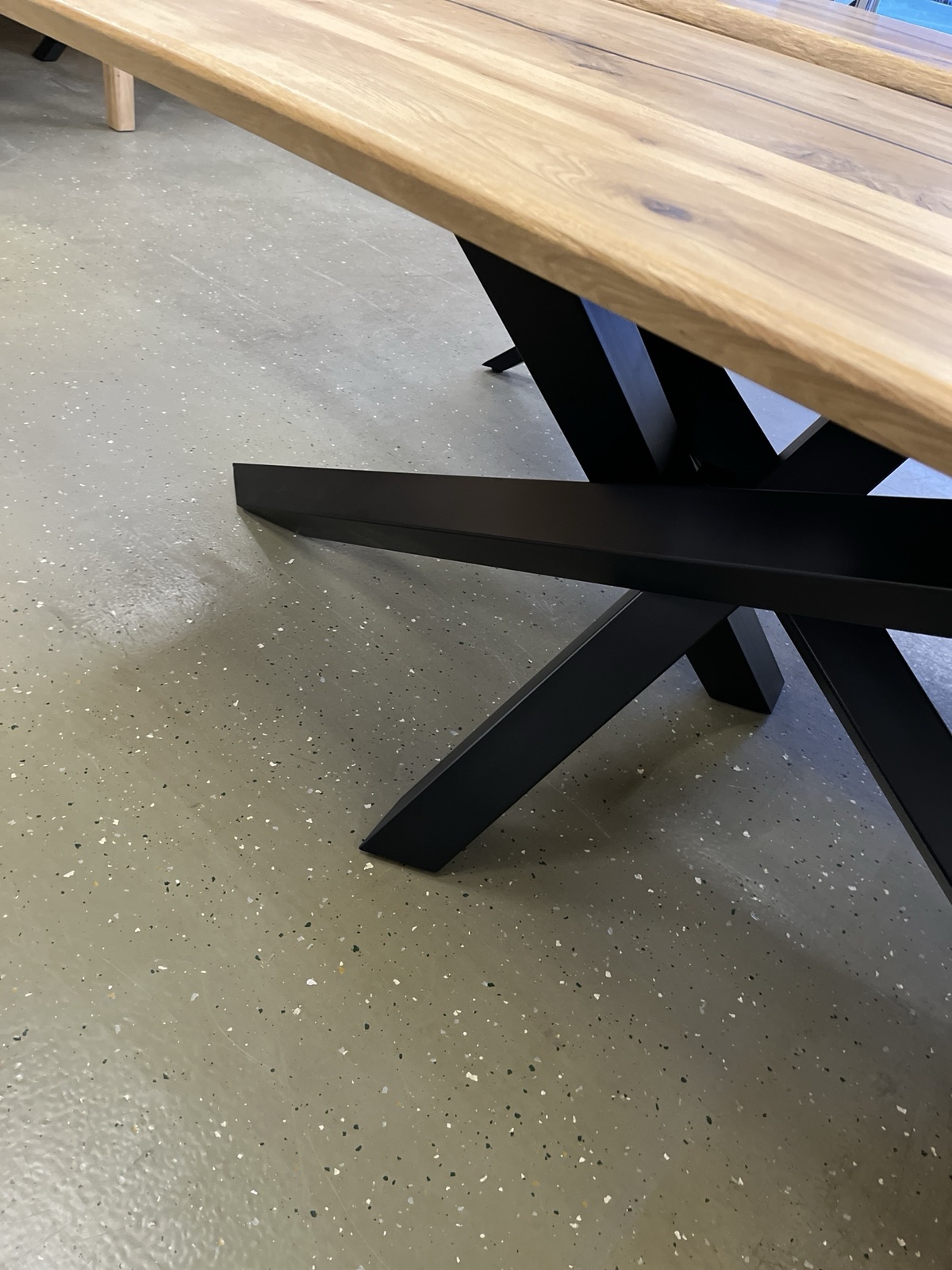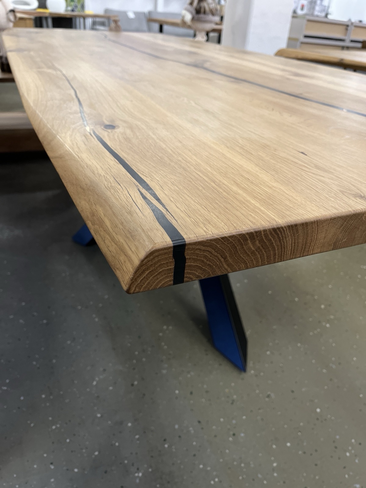 Schreiben Sie die erste Rezension für „Esstisch Tisch + Massivholz Eiche 240x100x75 cm Epoxidharz mit Stern / Doppel X und U Gestell“